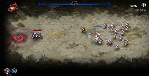 4、正式进入到游戏战斗场景,我们的主角在左边,敌人从右边过来,我们点击屏幕即可释放我们的技能,迪亚波罗的技能为远程攻击,技能剩余次数在左下角