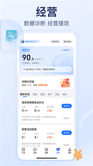 饿了么商家版app手机版是一款好用的外卖商家店铺管理软件,而且此次小编带来的是饿了么旗下开发的专为商家使用的版本,在这款软件中拥有快速出单、蓝牙连接、店铺状态、一键查货、账单查询等等强大的功能,可以帮助各位商家们在经营店铺时拥有更高的效率,并且在软件内还有即时的沟通功能,让你不用电话也可以随时和外卖员、顾客进行沟通,及时了解你的订单派送情况,非常的好用。