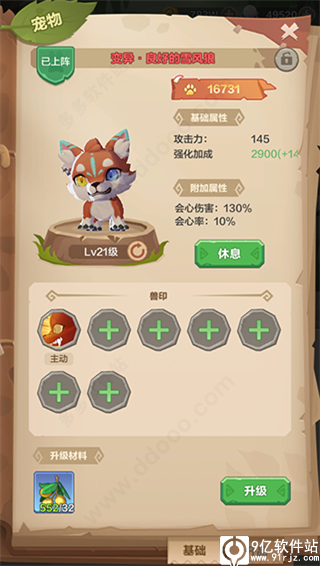 宠物可以进行强化和升品的培养,强化需要消耗甜甜浆果来提升宠物的等级,来提升宠物的战斗力。