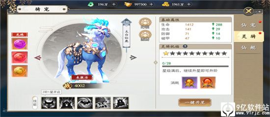 灵骑消耗材料可升星,满10星可进一阶,进阶到指定阶数可以解锁新灵骑形象,进阶到指定阶数可以解锁新技能。