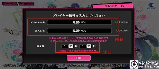 2、然后输入你的游戏名字以及生日等信息,注意这里点击【ok】后还需要再确认一遍;