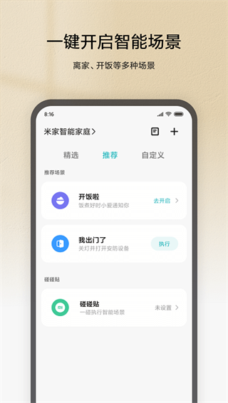 同时这款米家app使用起来也非常方便,联动操控,轻松使用,各个功能一目了然,用户们都可以很快速的掌握设备的添加与操作,瞬间实现智能设备之间互联互通。而且它的设计还非常人性化,个性定制,随你喜好,用户们都可以按照自己的使用习惯,设置你个性化的智能场景,用起来别具一格,另外,软件还不受时空和人数的约束,家人、朋友都能一起控制设备,兼容性很强,大家可以一起共享科技的快乐。