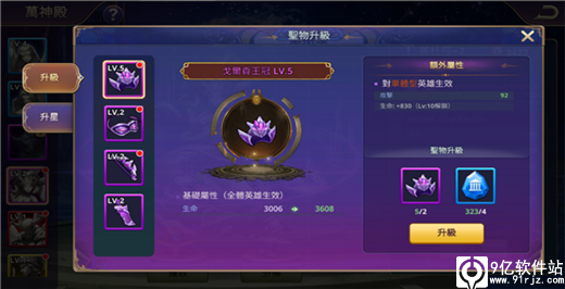 圣物每个部件都可以进行升星,升星需要消耗星魂石。每1星级分为8个小阶段,提升到第8阶则可以升星1次。