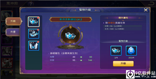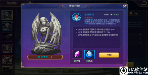 获取到的圣物,除了用于激活神像,还能为部件升级,当同一个神像的所有圣物部件均达到对应等级,则该神像技能也可提升至对应等级。例如:美杜莎的圣物部件均达到3级,则该神像技能可以升级为3级。圣物升级所需消耗:同部位圣物+神殿印记。神像技能升级所需消耗:神殿水晶+神殿印记。