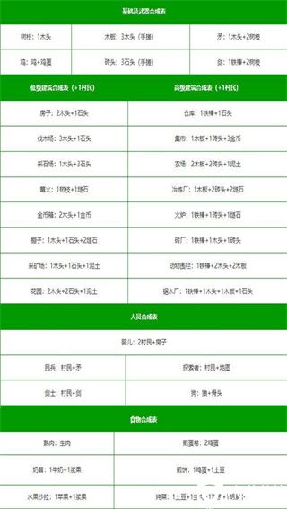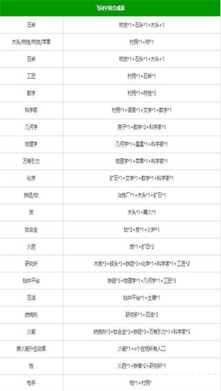 以上就是游戏合成表,随着等级的提升,会有更多物品等待我们去合成。