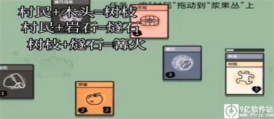1、我们先把残血的村民放在木头上来获得【树枝】。