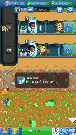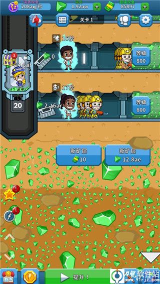 一、开拓新矿层攻略1、在偷懒的矿业大亨无限金币钞票版游戏里,当我们将一层的矿工全部升级满之后就可以考虑开启下一层了