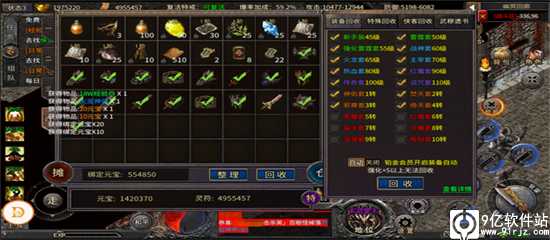 2、装备回收:打到多余的装备可以回收获得元宝奖励!