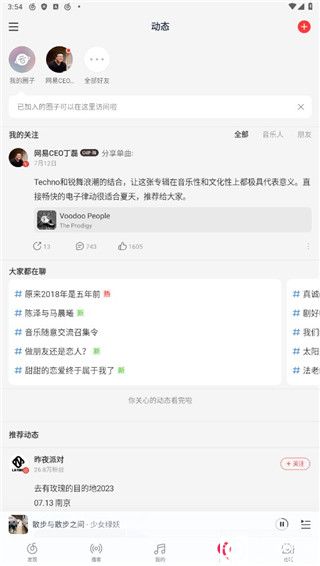 4、关注页面可以清楚看到我们关注的歌手发布的实时动态,爱他就要关注他哦!
