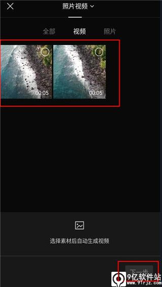 3、在新页面里选择好我们需要的素材,然后点击“下一步”