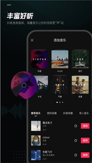 海量曲库外加抖音独家歌曲,奇趣变“声”,让你的视频更“声”动。