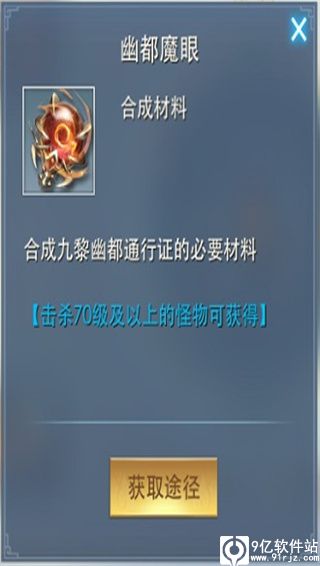 材料通过击杀70级以上的怪物获得,当然也可以从商城直接购买~