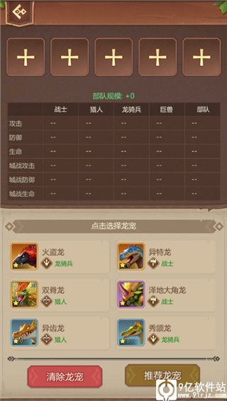 2、行军战斗中,增加阵型,默认为战士阵型,可通过行军列阵科技研究后开启新阵型:龙骑兵阵型、猎人阵型。