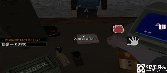 游戏内,在检查完护照和签证之后,一只手按住红色的拳头,另一只手拖动屏幕到那个人身上,就可以把签证和护照直接递交给游客了。