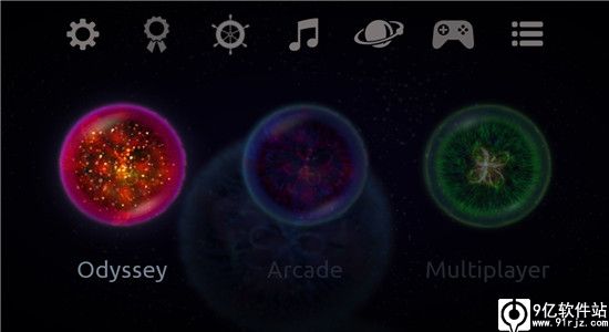 一、画面背景:抽象的太空之旅星噬是2009年的时候独立游戏入围作品之一,游戏的素质很高,游戏画面背景极具玄奇抽象,以太空为大背景,在无尽的黑暗之中,玩家则是一个小星云,为了生存只能不停的吞噬比自己小的星云,一步一步成长成整个空间里最强大的存在。再配合游戏中旋律轻松优雅的音乐,让玩家在优美的音乐背景伴奏下,可以很轻松的享受着这一段奇妙的时空之旅。