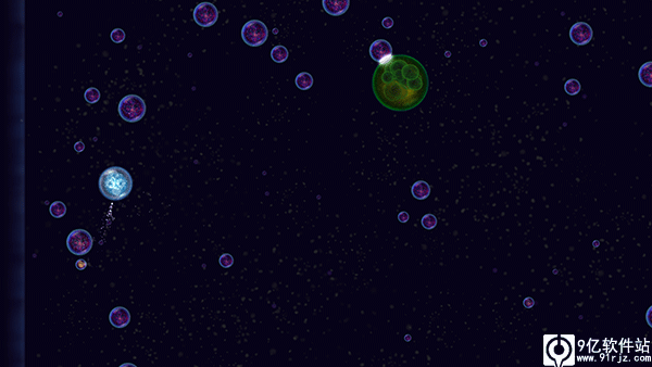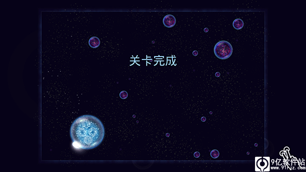 4、游戏中,唯一的变量是玩家操纵星球喷出的气泡,气泡的作用一是移动星球,二是可以推开附近的星球,利用气泡的功能,玩家在接近其他星球的时候,可以利用惯性和推力推开接近自己的红色星球。