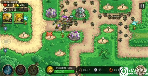 法师塔可升级为术士(紫塔 高攻慢速+控制)和法师(橙塔 低攻高速+破甲)