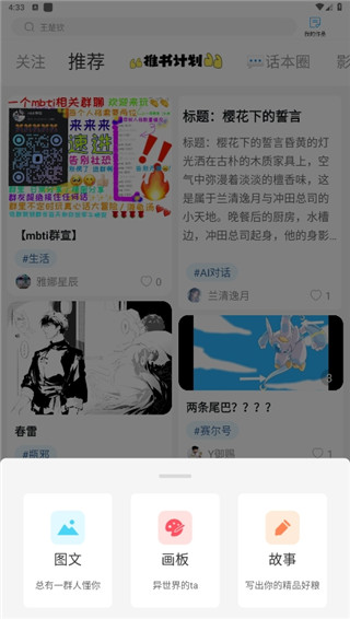 3、这里可以看到图文、画板、故事三种不同的类型。小编选择故事