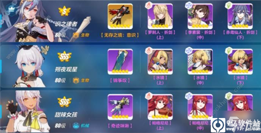 如果没有水镜套的话可用糖泳牛代替。阵容以识律为输出核心,其余两个辅助位可以在观星、格蕾修和卡萝尔之间三选二就行,哪两个装备好就用哪两个。