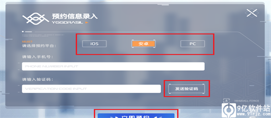 2、然后我们选择自己的预约平台,输入手机号,点击发送验证码,输入之后点击立即预约即可。