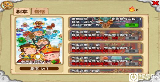 1、关于副本,1级可以打魔物,3级开全部副本。新手不建议打,战斗力越高打魔物越好。
