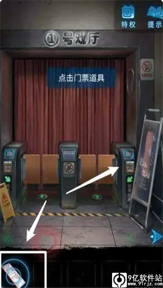 5、对话完之后我们会获得门票,但是窗口的人一直不讲话,也不找我们钱,先不管这个,刷门票就可以进去看戏剧了。