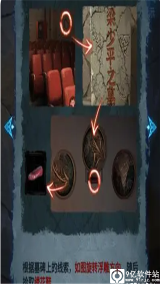 10、根据墓碑上面的线索,在图示位置旋转浮雕机关,打开获得绣花鞋。