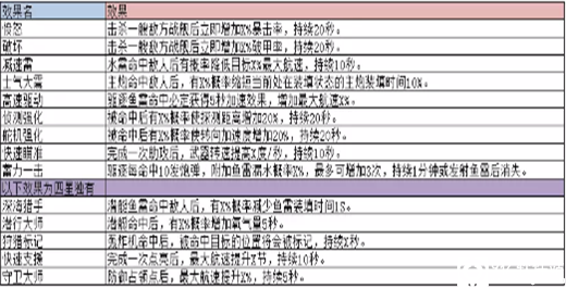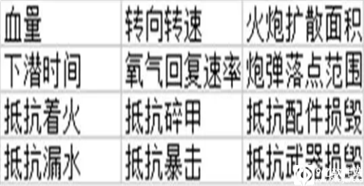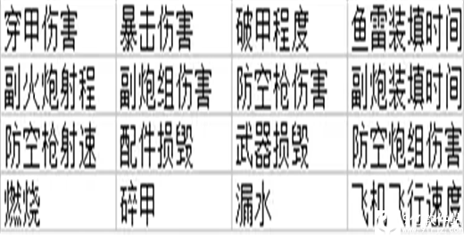 首先:配件系统一共有4个,分别是水密舱,装甲带,火控塔和飞剪艏。四个配件作用各有不同,水密舱和装甲带以防御为主,火控塔和飞剪艏以进攻为主。下面分别附上四个技能的列表如下:水密舱