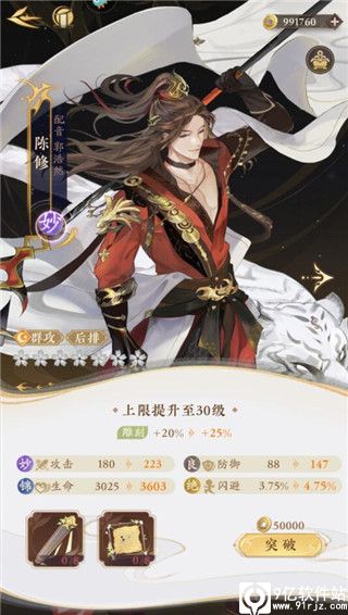 4、然后对名士进行升级和突破就可以了,每次需要消耗一定数量的道具和铜钱,这些可以通过副本获取
