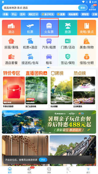1、打开下载好的携程旅行app官方版,点击首页的火车票