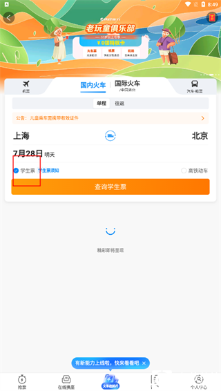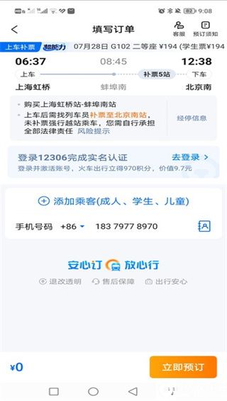 5、最后在页面中选择乘坐人学生,点击预订即可