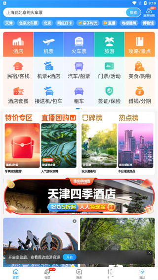 随时随地预订酒店、机票、火车票、汽车票、景点门票、用车,跟团游、周末游、自由行、自驾游、邮轮、旅游度假等产品!畅享旅游攻略。出行、旅游不用愁!