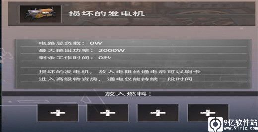 它的作用在前期很重要,在我们去开绿卡、蓝卡、紫卡门的时候就需要用到它来插入破损的发电机进行发电,可以说插电阻丝是第一步也是必不可少的其中一步。