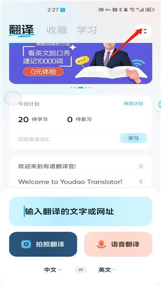 打开有道翻译官2024最新版软件点击右上角四个点的图标