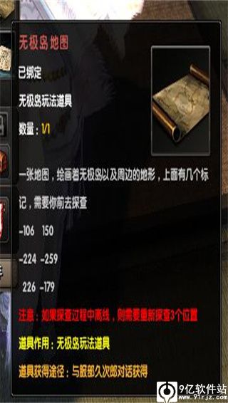 同上NPC久次郎接任务,只能先完成一个再接另一个,接任务前,注意是接之前,先像上面一样填满任务包,这样无极岛地图也会发到邮箱,建议一张地图留2个在邮箱,任务2同样操作。也是跑地图3个点。