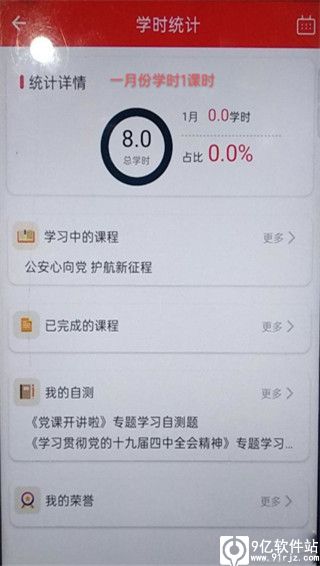 7、点击学时统计可以查看本期学习情况,1月份学满1个学时才合格!!!