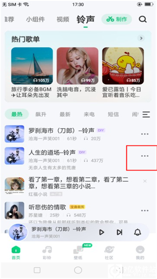 1、打开这款酷狗铃声2024最新版,找到想要下载的铃声点击“...”