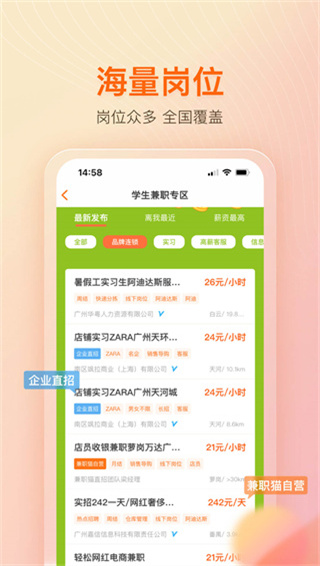 4、商家都是经过软件的专业认证,绝对真实可靠,杜绝虚假兼职,里面的岗位也都经过层层筛选,正规平台