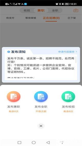 2、之后可以自行选择是发布兼职还是全职还是校招