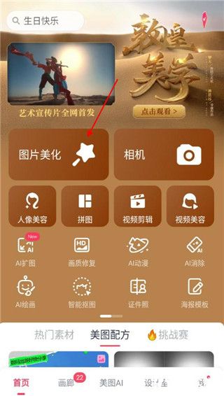 1、在9亿下载这款软件,然后在手机上打开2、进入软件主界面,点击“图片美化”
