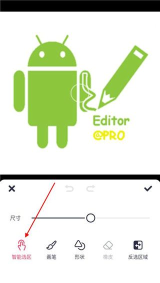 4、然后进入抠图页面,我们选择底部菜单的“智能选区”