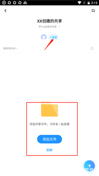 在这里邀请需要传输文件的人,点击添加文件即可。