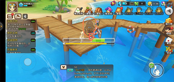 8、完成建园任务后,解锁鱼塘,用80金币养鱼12小时,收获6~9条鱼,可以卖给集市或机器人。渔网只买1折的,不然亏!