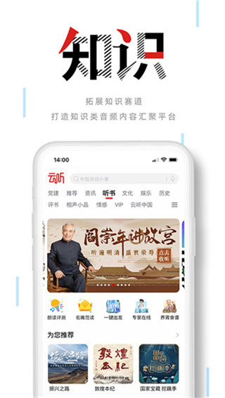 云听音乐app是一款手机端听书音频应用软件,这款app由中央广播电视台推出,官方正版授权,里面拥有海量优质的音频资源,涵盖文艺、知识、娱乐等多种听书板块,不但有丰富的有声小说,还有音乐、情感、财经、综艺、养生、评书、汽车、相声等海量内容。而且上至中老年的戏曲、历史,下至幼儿儿童的启蒙读物都囊括其中,包含的内容非常广泛,满足不同人群对于不同爱好的需求,让不同年龄段的用户们都能进行享受畅听海量优质的音频资源。