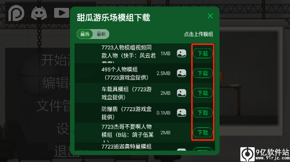 一、自带模组1、打开甜瓜游乐场游戏点击左方的7723模组,打开之后这边我们可以随便选择一个进行下载