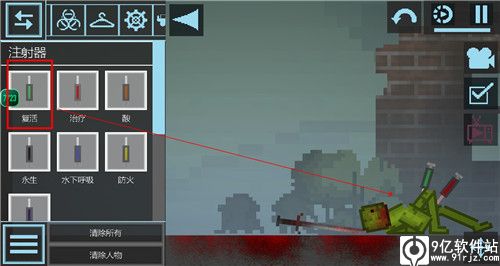 7、最好玩的是我们不仅能够使用各种武器消灭甜瓜,也能用注射器将其复活,蛮有意思的!