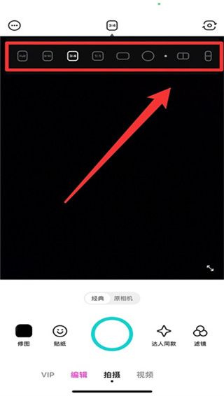 2、进入后可以自行选择拍照比例,向右滑还能出现很多拼图效果供你选择