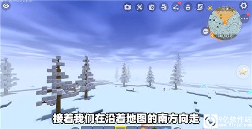 3、然后我们只需要沿着地图的南方前进,一直到看到雪山为止