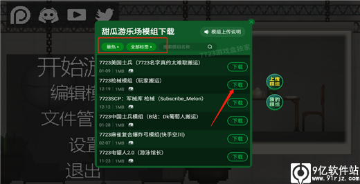 游戏自带模组,这里有各种各样的mod可以使用,玩家也可以上传自己制作的mod