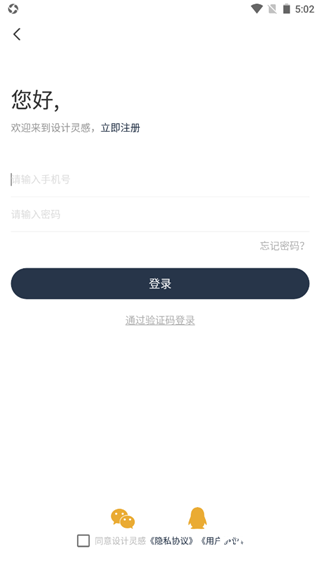 1、下载打开拓者设计吧app,输入帐号、密码进行登录,也可注册一个新的帐号;